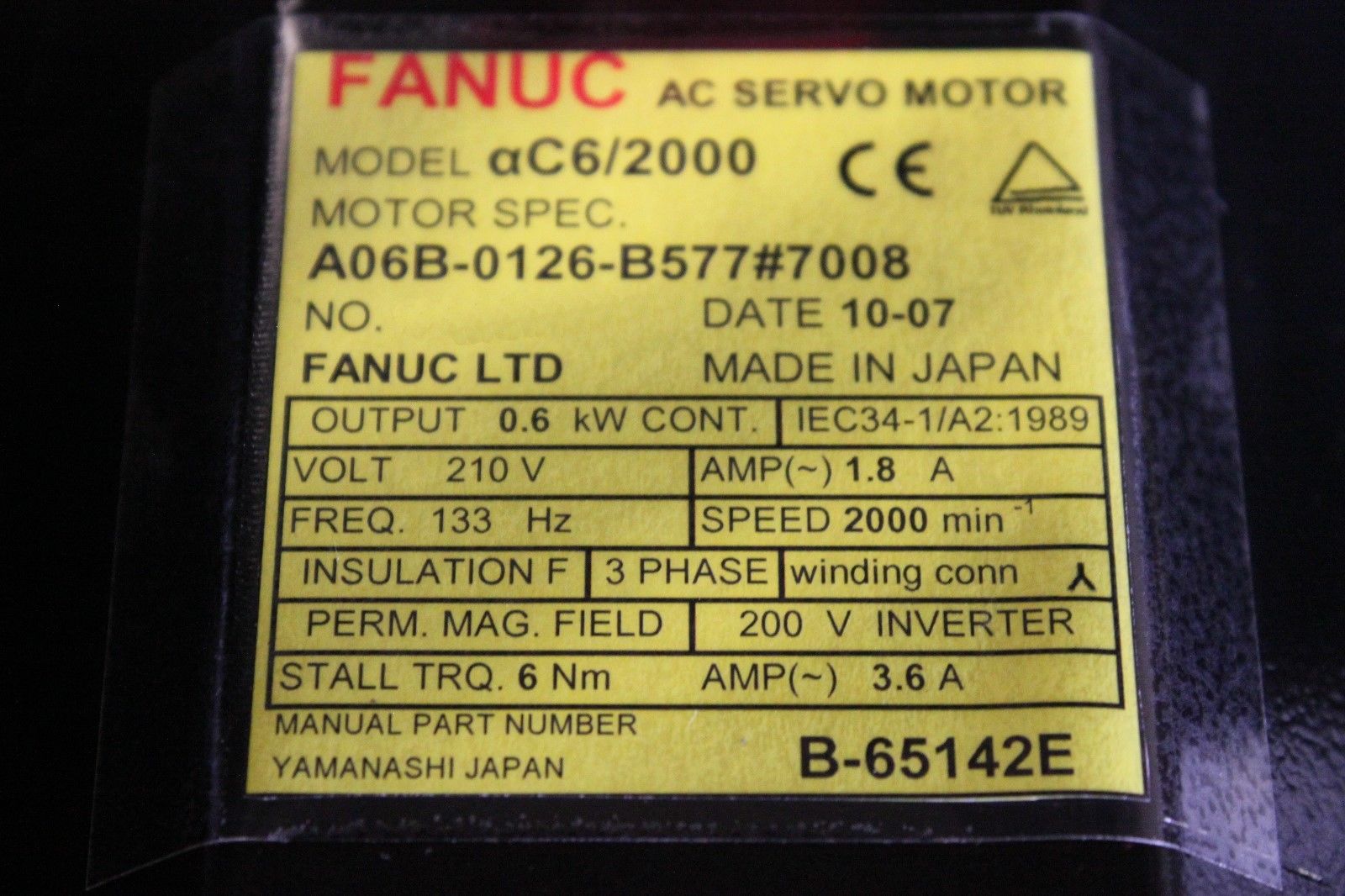 Products / Fanuc / Servo Motors / AC Servo / Fanuc A06B-0126-B577#7008 AC MOTOR AC6/2000 I64 W/KEYWAY *1 YEAR WARRANTY*