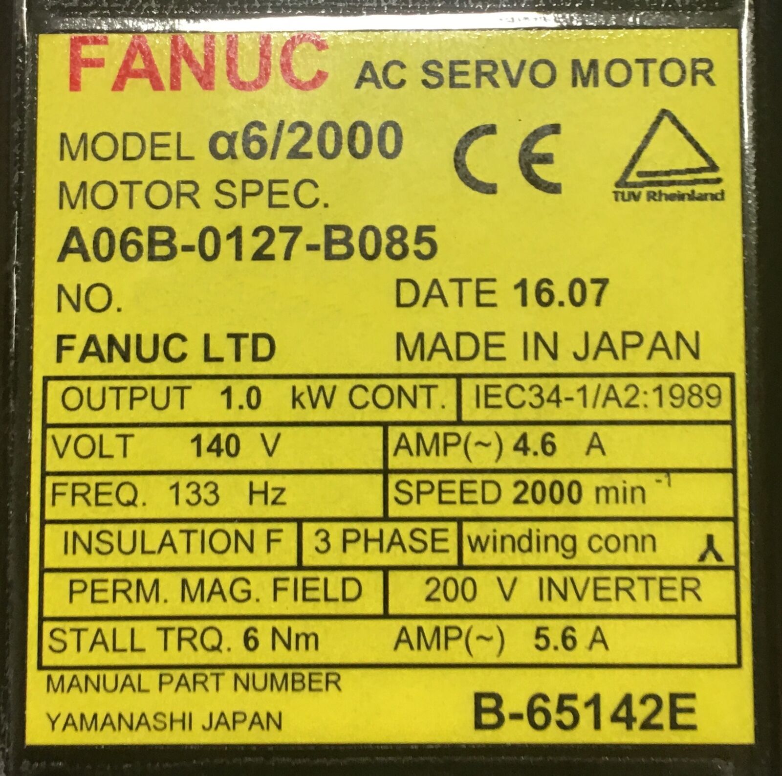Products / Fanuc / Servo Motors / AC Servo / Fanuc A06B-0127-B085 AC MOTOR A6/2000 SERIAL A+SCAP *1 YEAR WARRANTY*