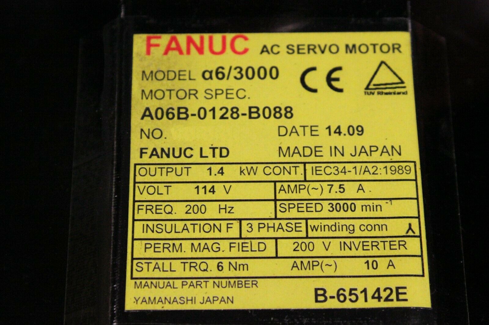 A06B-0128-B088 Fanuc AC Servo Motor A6/3000 A1000, 114V, 200Hz, 3PH, 7.5A