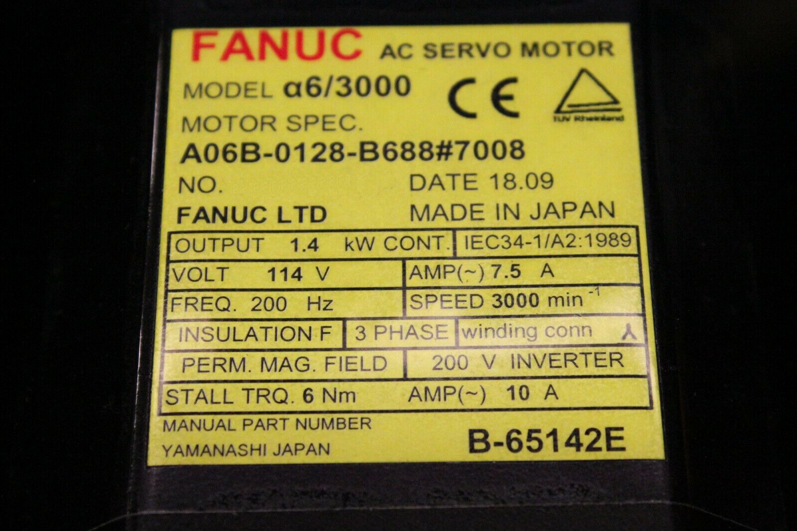 Fanuc A06B-0128-B688#7008 AC MOTOR A6/3000 A1000 BRK KEY *1 YEAR WARRANTY*