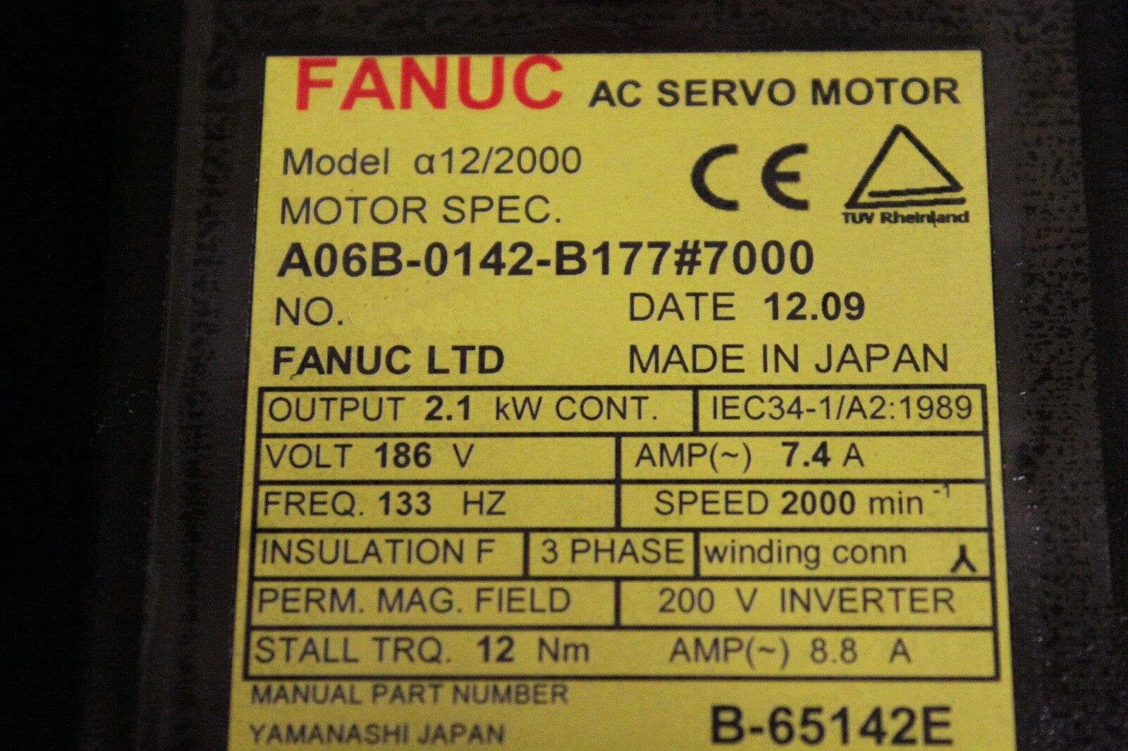 Products / Fanuc / Servo Motors / AC Servo / Fanuc A06B-0142-B177#7000 AC MOTOR A12/2000 I64 W/BRAKE *1 YEAR WARRANTY*