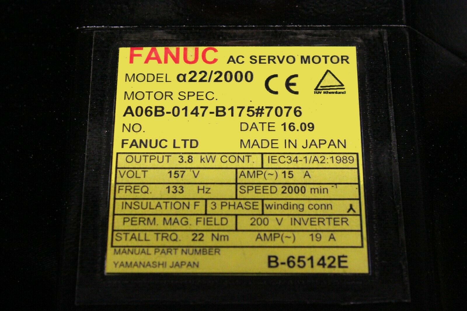 Fanuc A06B-0147-B175#7076 AC MOTOR A22/2000 A64 BRAKE KY *1 YEAR WARRANTY*