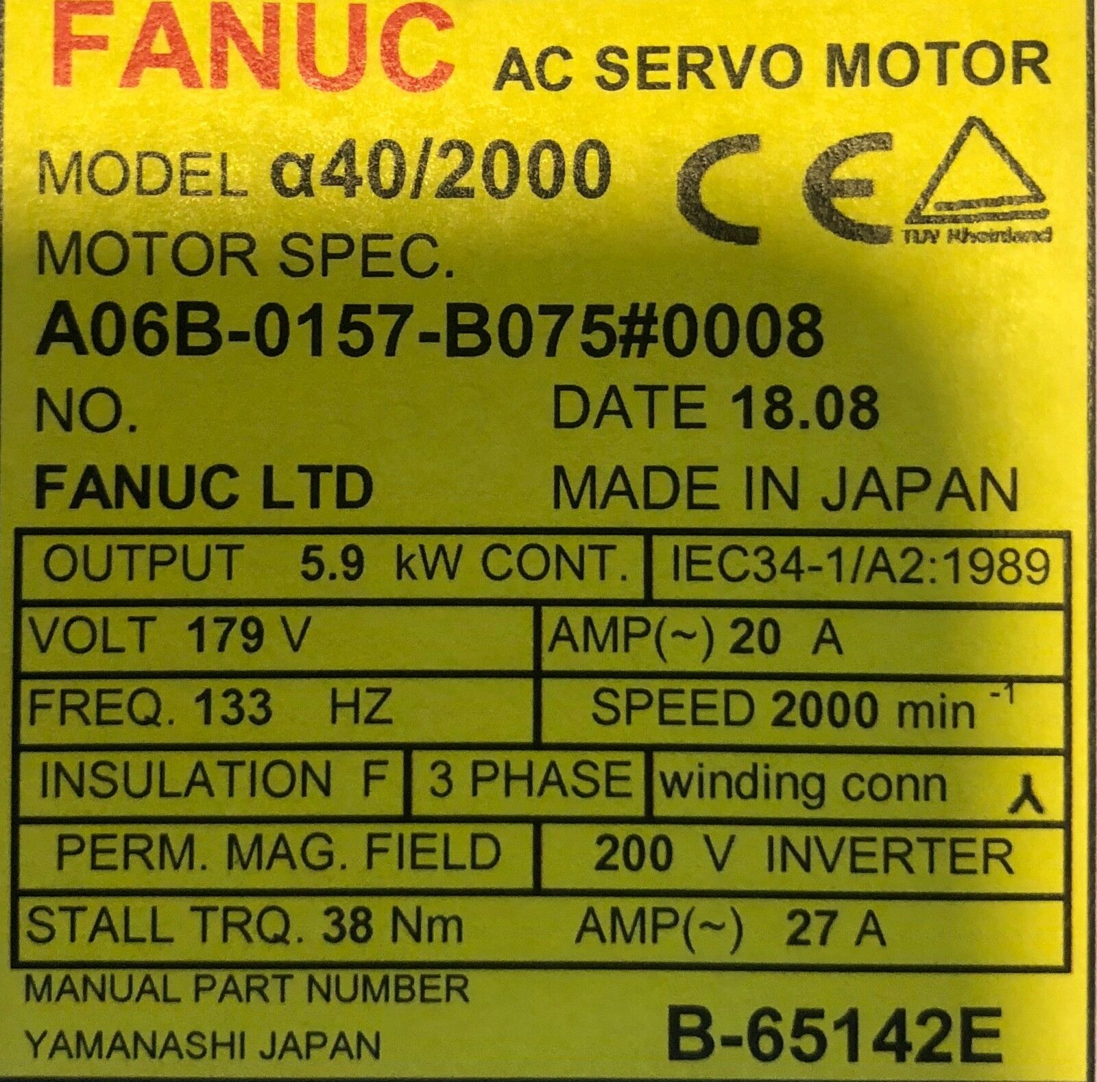 Motor Spec: A06B-0157-B075#0008
