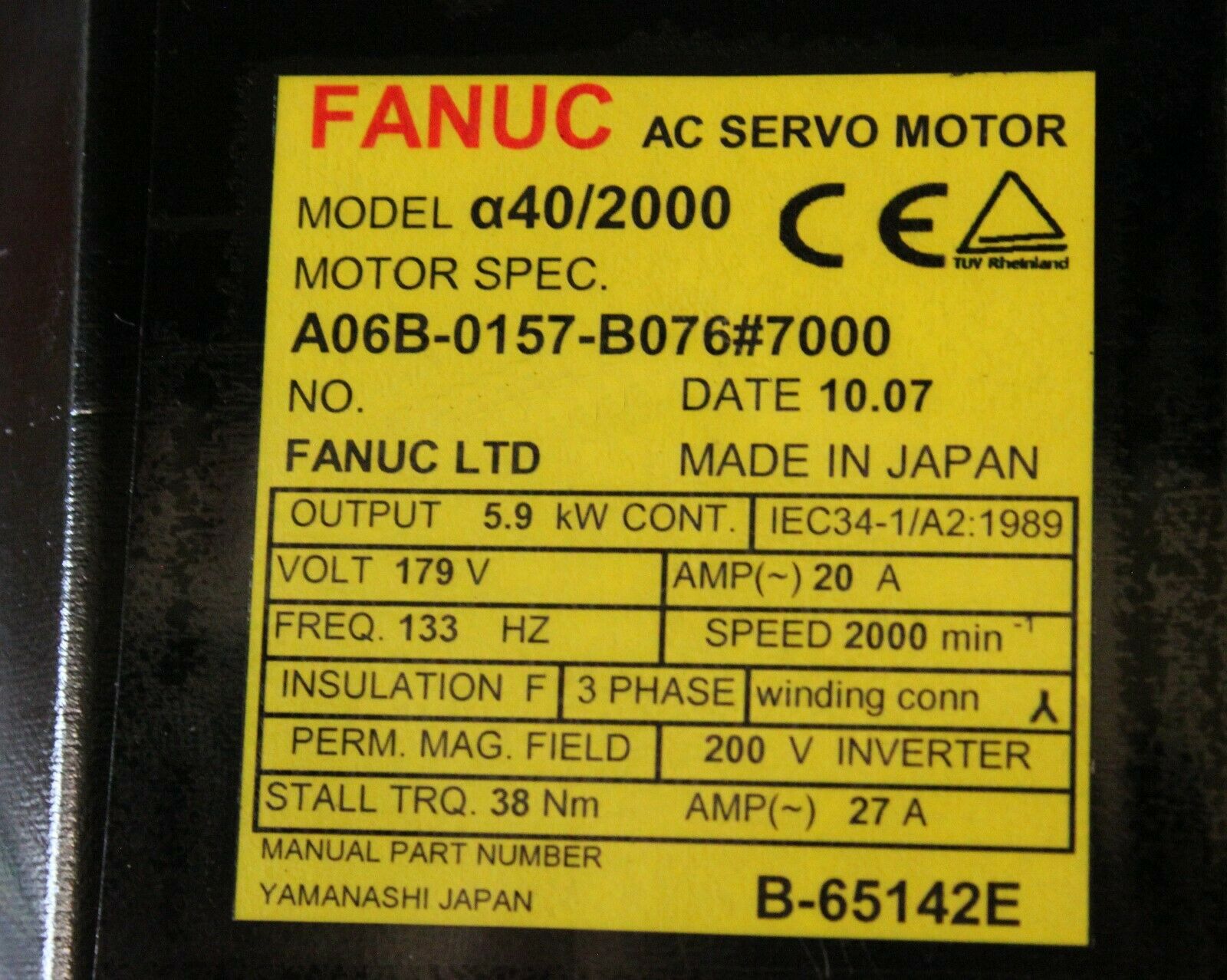Products / Fanuc / Servo Motors / AC Servo / Fanuc A06B-0157-B076#7000 AC MOTOR A40/2000 A64+S.CAP *1 YEAR WARRANTY*