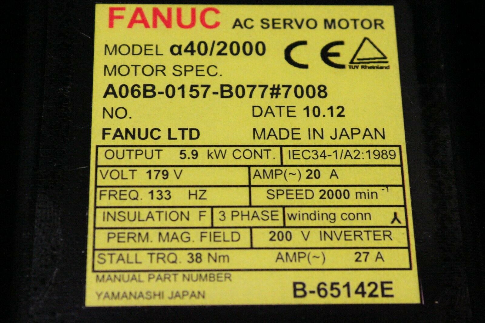 Products / Fanuc / Servo Motors / AC Servo / Fanuc A06B-0157-B077#7008 AC MOTOR A40/2000 I64 W/KEYWAY *1 YEAR WARRANTY*