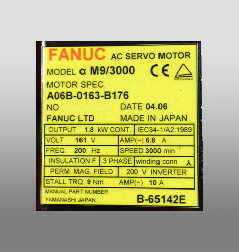 Products / Fanuc / Servo Motors / AC Servo / Fanuc A06B-0163-B176 AC MOTOR AM9/3000 A64+SC BRAKE *1 YEAR WARRANTY*