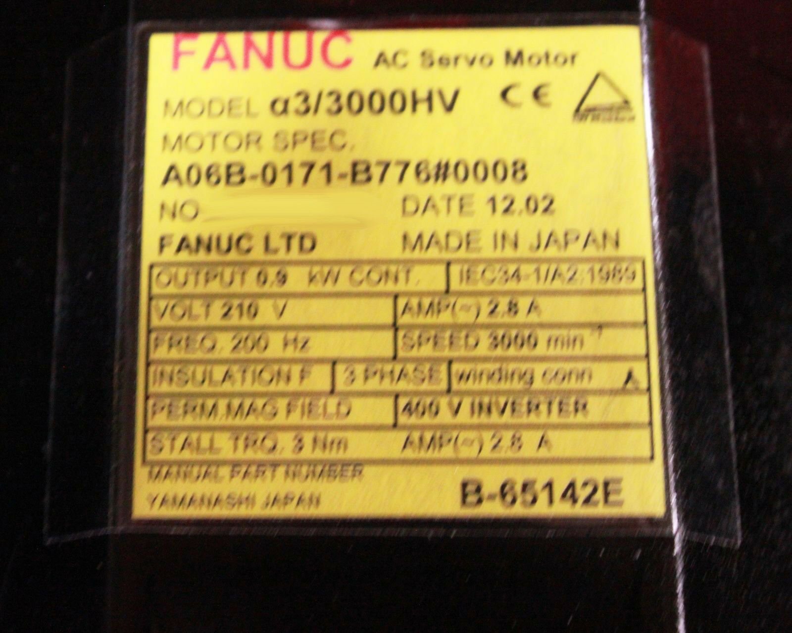 Products / Fanuc / Servo Motors / AC Servo / Fanuc A06B-0171-B776#0008 AC MOTOR A3/3000HV A64+C BRAKE *1 YEAR WARRANTY*