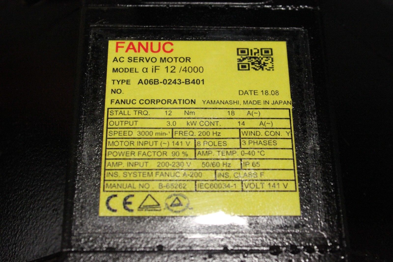 Products / Fanuc / Servo Motors / AC Servo / Fanuc A06B-0243-B401 AC MOTOR AIF12/4000 AII1000 BRAK *1 YEAR WARRANTY*