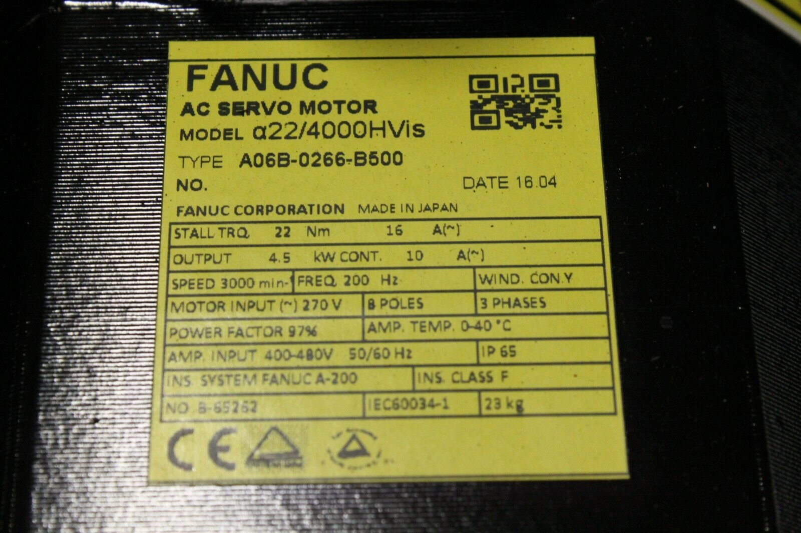 Products / Fanuc / Servo Motors / AC Servo / Fanuc A06B-0266-B500 AC MOTOR AIS22/4000HV BRK 35NM STR/KY *1 YR WARRANTY*