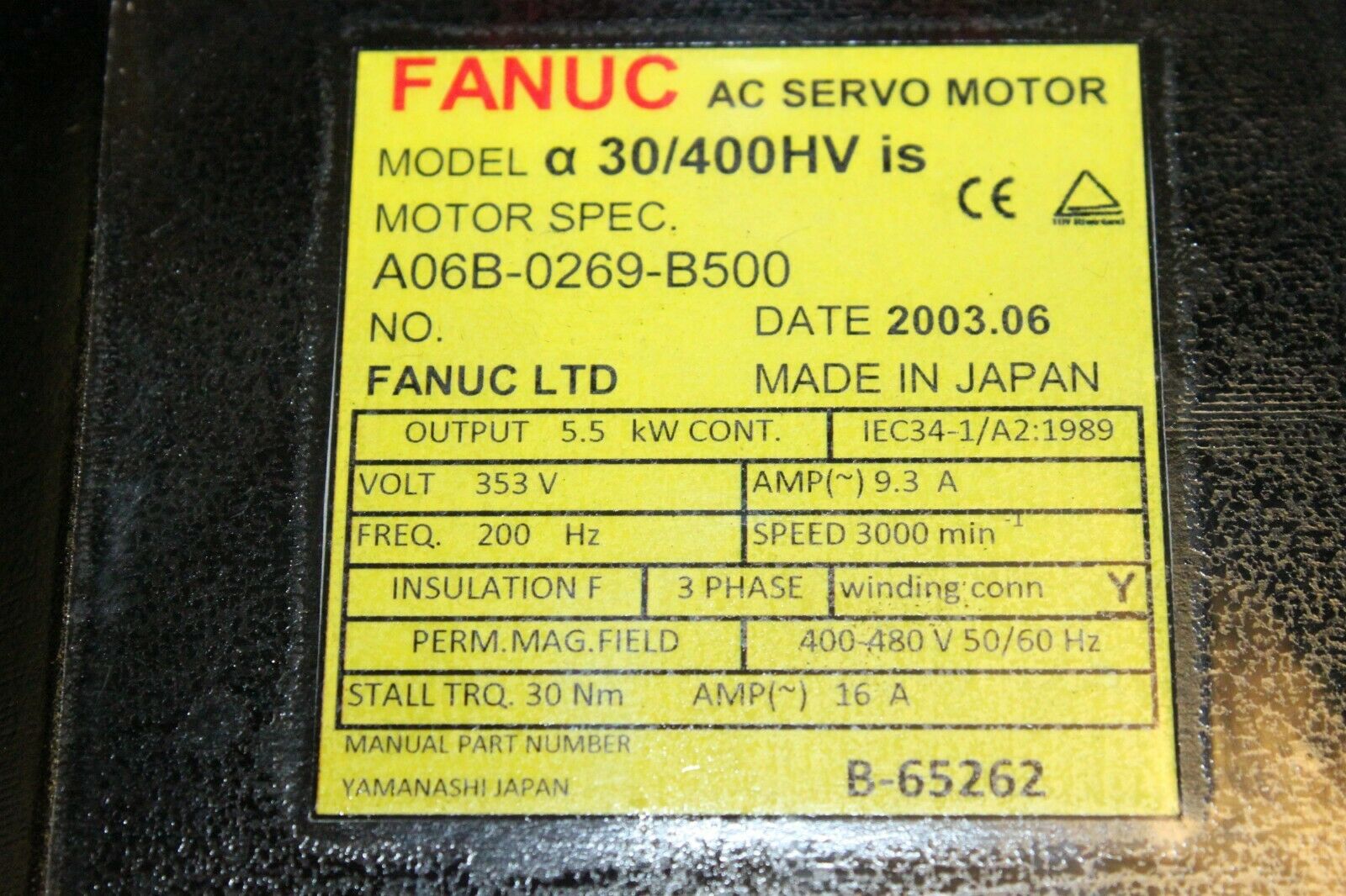 Products / Fanuc / Servo Motors / AC Servo / Fanuc A06B-0269-B500 AC MOTOR AIS30/4000HV AIA1000 BRK 35NM STr 1 YEAR WARRANTY
