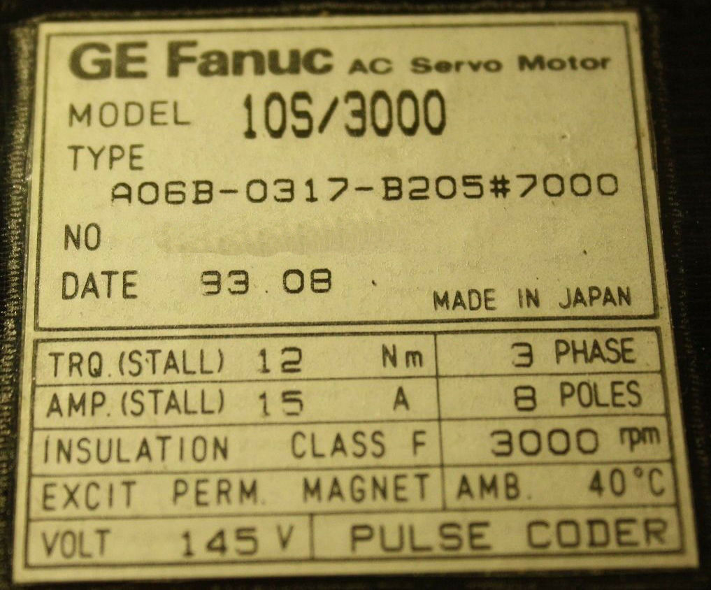 Products / Fanuc / Servo Motors / AC Servo / Fanuc A06B-0317-B205#7000 AC MOTOR 10S/3000 2500P BRAKE *1 YEAR WARRANTY*