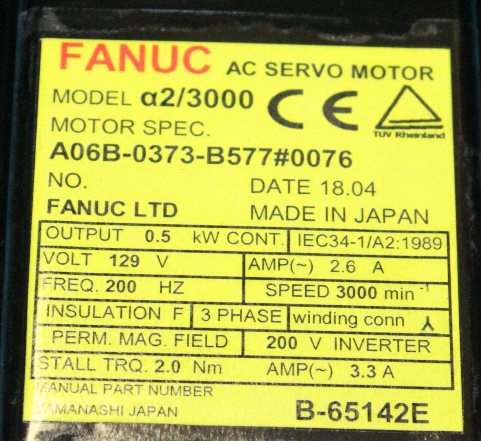 Products / Fanuc / Servo Motors / AC Servo / Fanuc A06B-0373-B577#0076 AC MOTOR A2/3000 I64 KEYWAY *1 YEAR WARRANTY*