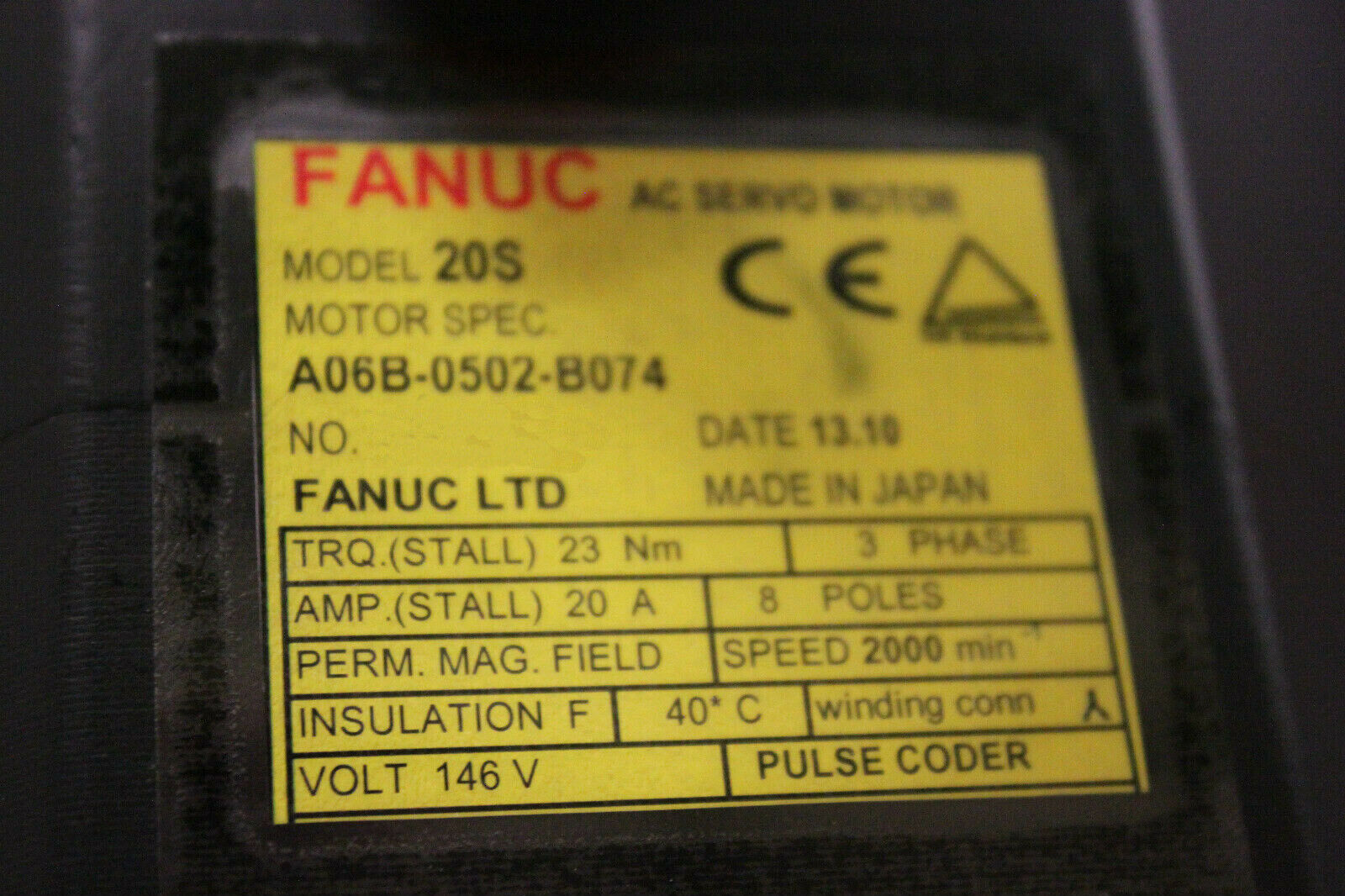 Products / Fanuc / Servo Motors / AC Servo / Fanuc A06B-0502-B074 AC MOTOR 20S SERIAL C STR *1 YEAR WARRANTY*