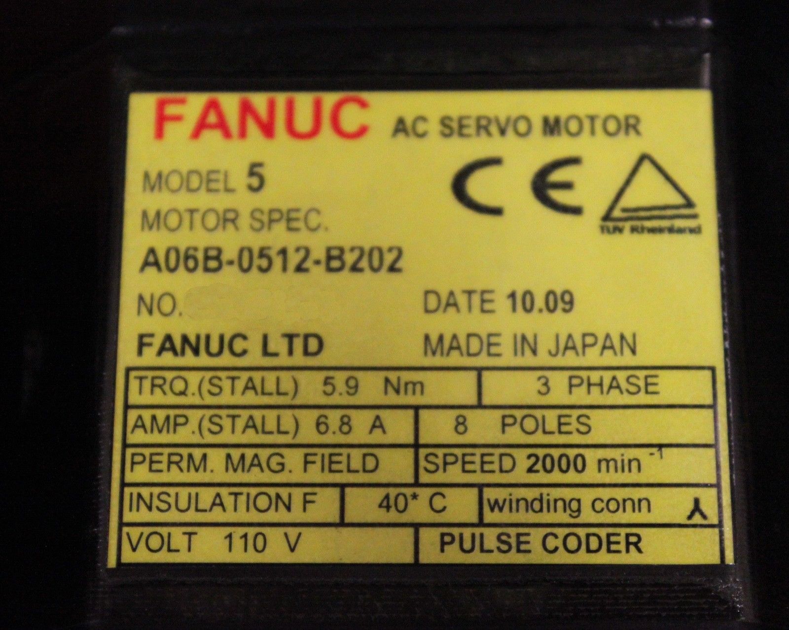 Products / Fanuc / Servo Motors / AC Servo / Fanuc A06B-0512-B202 *1 YEAR WARRANTY*