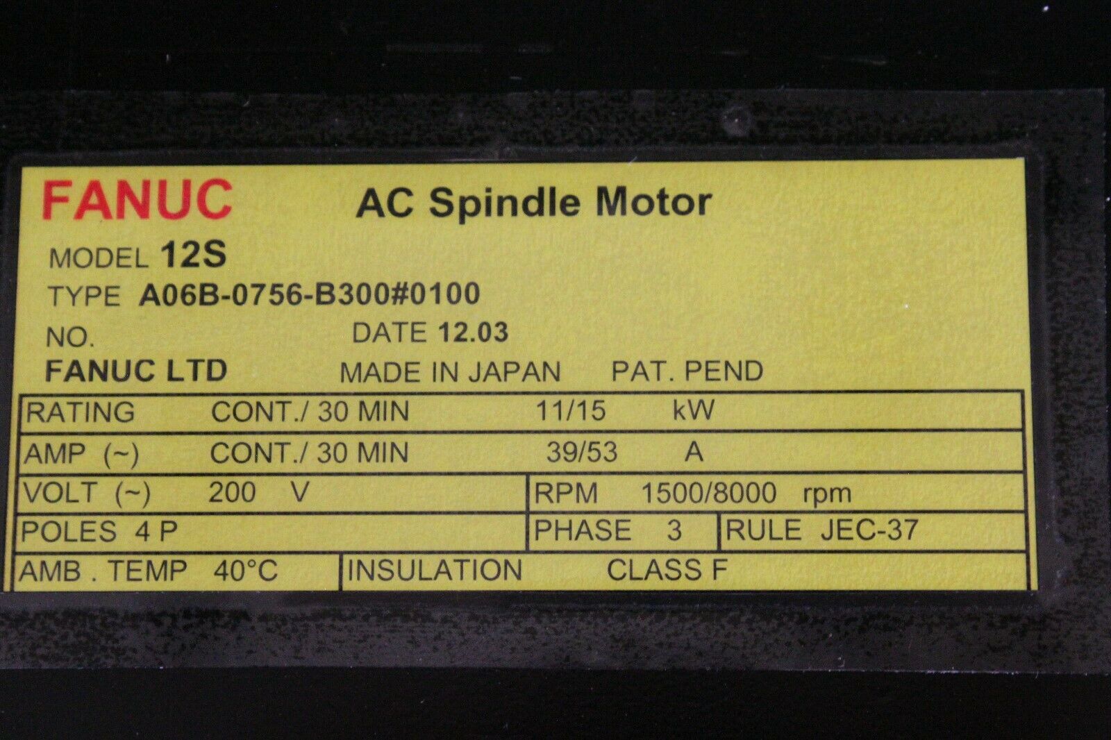 Products / Fanuc / Servo Motors / AC Servo / Fanuc A06B-0756-B300#0100 AC SPINDLE MOTOR 12S FLANGE MT *1 YEAR WARRANTY*